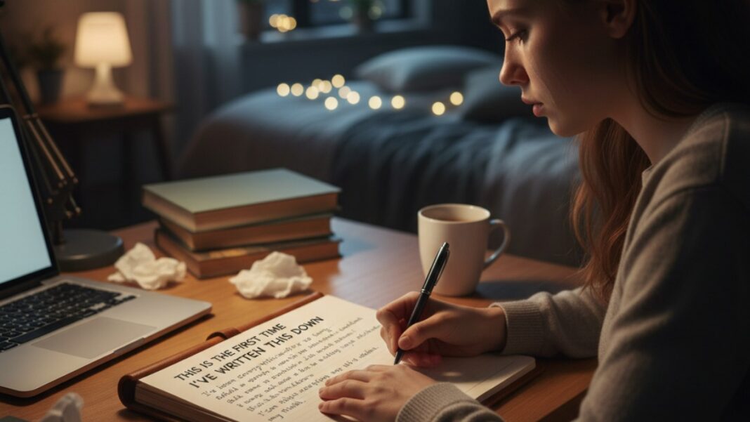Writing it down feels safer than saying it out loud. When I say things out loud, I worry about reactions. About faces changing. About someone interrupting or asking questions I’m not ready to answer. On the page, I get to go at my own pace. I can stop, erase, start again.